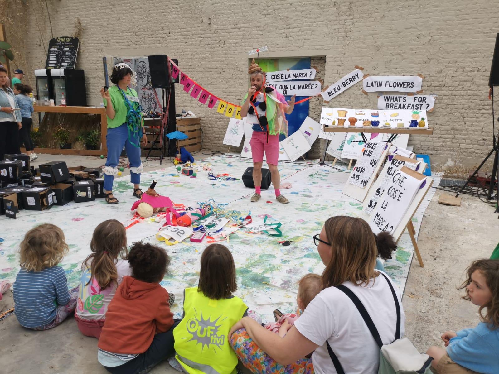 MANTRA POP SHOW propose, dans une forme décalée, des leçons d’apprentissage qui croisent aussi bien les langues que les couleurs, les heures, les fruits et les légumes.